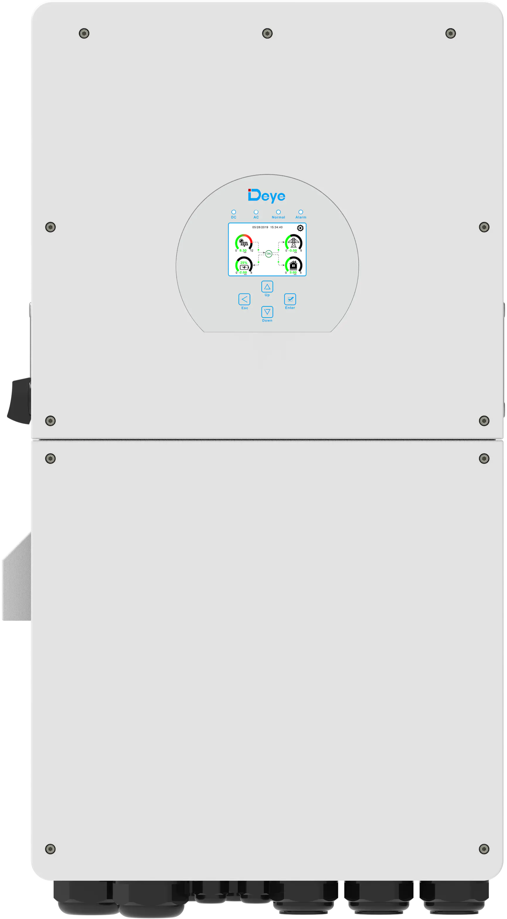 Profesjonalny jednofazowy falownik hybrydowy o mocy 16 kW marki Deye, zaprojektowany do dużych instalacji PV z magazynem energii 48 V. Idealny dla domów o wysokim zużyciu energii, rezydencji, pensjonatów, warsztatów oraz małych obiektów komercyjnych.