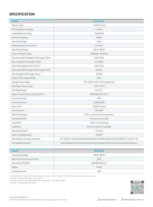 Magazyn Energii Dyness STACK100 15.36kWh LiFePO4 51.2V