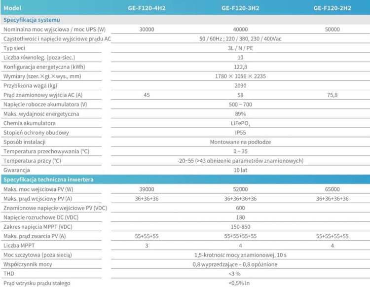 - Pojemność systemu – 120 kWh