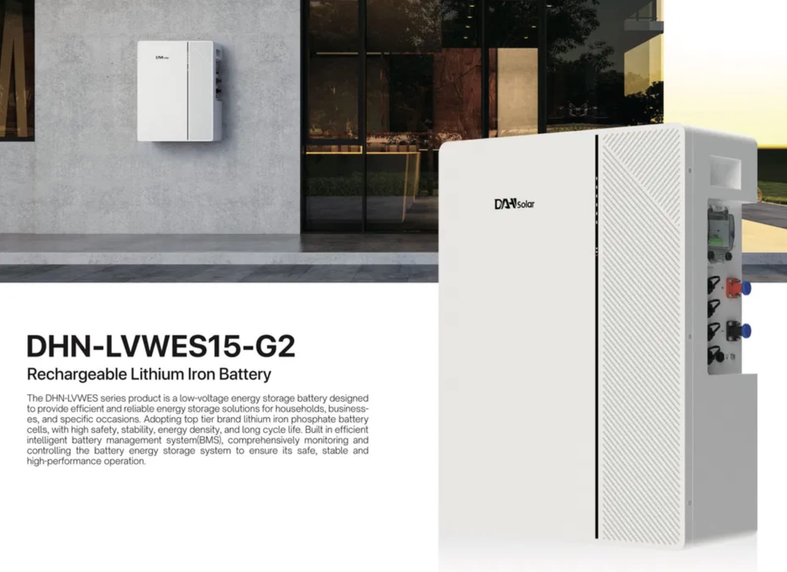 Przedmiotem sprzedaży jest magazyn energii niskonapięciowy DAH Solar DHN-LVWES15-G2 o pojemności 14.34 kWh, wykonany w bezpiecznej technologii LiFePO4.