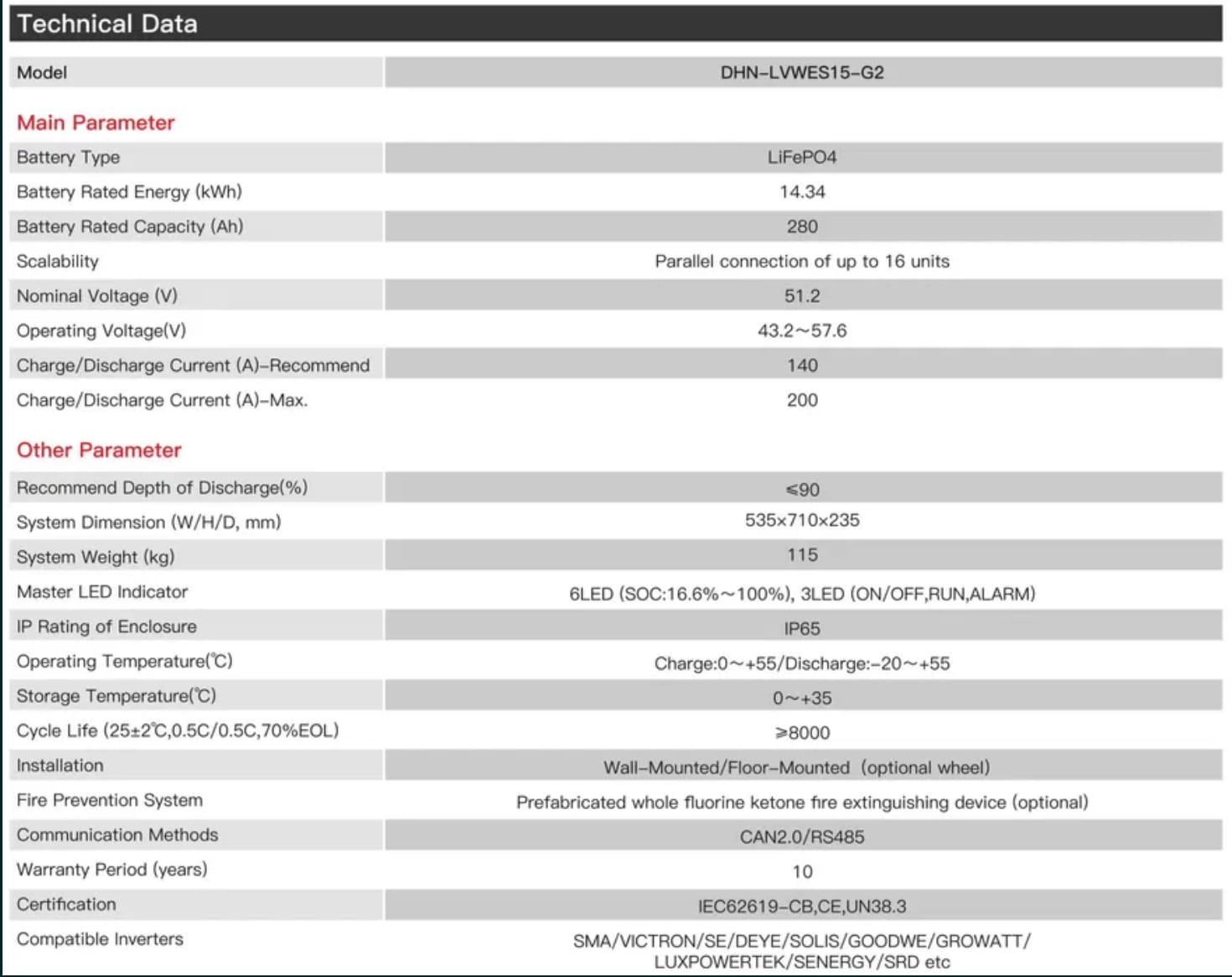 Najważniejsze cechy baterii DHN-LVWES15-G2