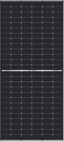 - Typ modułu: monokrystaliczny, ogniwa połówkowe (half‑cut)