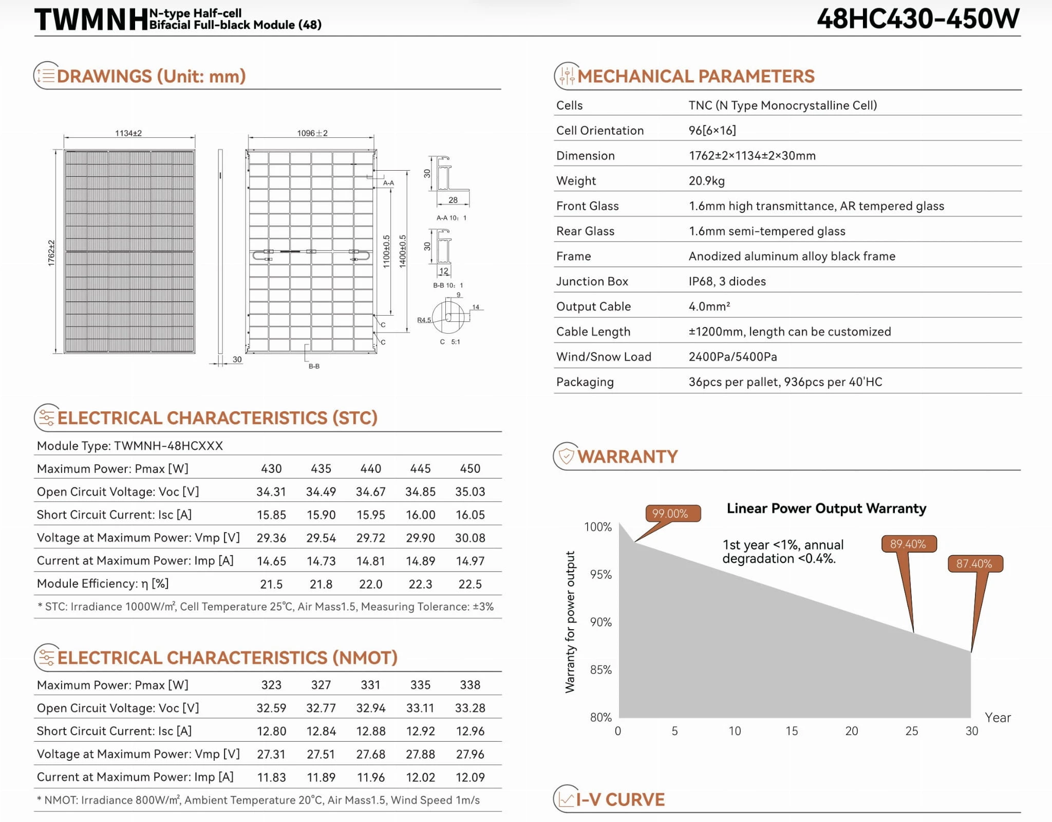 Paleta 36 szt Paneli PV TW Solar TWMNH 440W bifacial FullBlack N type half cell