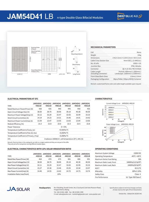 Paleta 36 szt. Panel PV JA Solar 450W Full Black Bifacial Double Glass