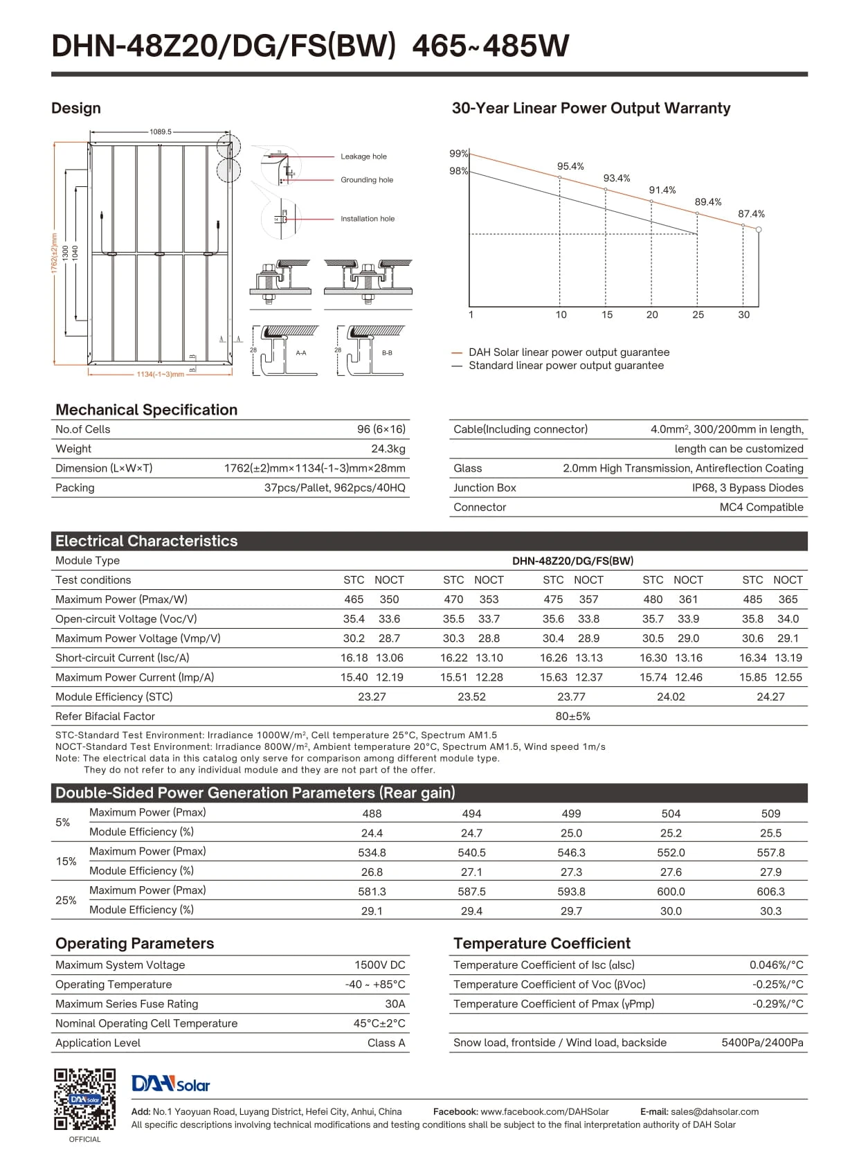 Panel fotowoltaiczny DAH SOLAR 470W Full Screen Black Frame to nowoczesny moduł typu N-Type, wykonany w technologii dwuszybowej (double glass). Przeznaczony do instalacji fotowoltaicznych w sektorze domowym i komercyjnym, zapewnia wysoką wydajność, trwałość oraz estetyczny wygląd dzięki konstrukcji Full Screen i czarnej ramie.