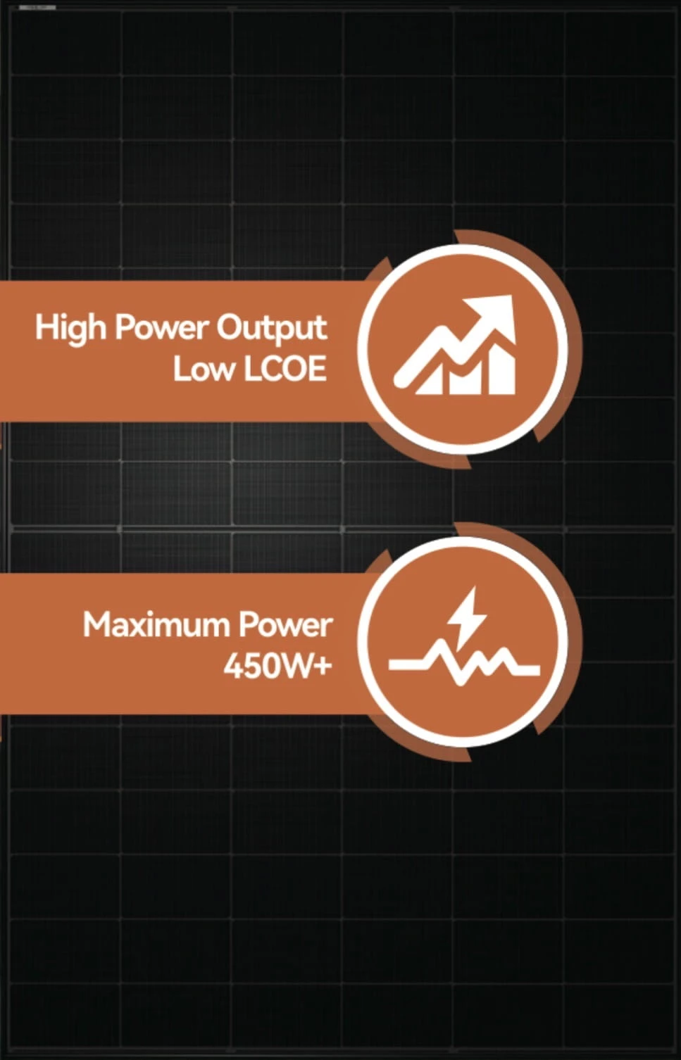 Estetyczna wersja Full Black sprawia, że moduły idealnie nadają się do instalacji dachowych, zachowując nowoczesny i elegancki wygląd. Konstrukcja bifacial umożliwia dodatkową produkcję energii z tylnej strony panelu.