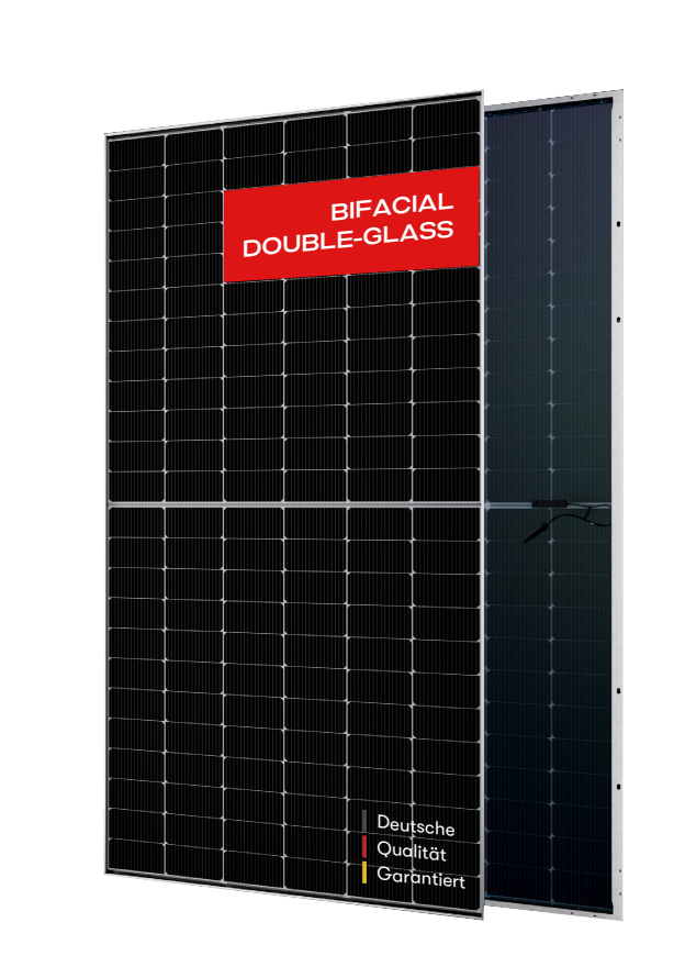Moduł wykorzystuje technologię N-Type TOPCon z ogniwami half-cut (144 ogniwa) oraz konstrukcję bifacialną szkło–szkło (double-glass). Dzięki temu zapewnia bardzo niską degradację mocy, brak efektu LID/LeTID, wysoką odporność na PID oraz zwiększoną produkcję energii dzięki uzyskowi z tylnej strony modułu (bifacialność 80 ±5%).