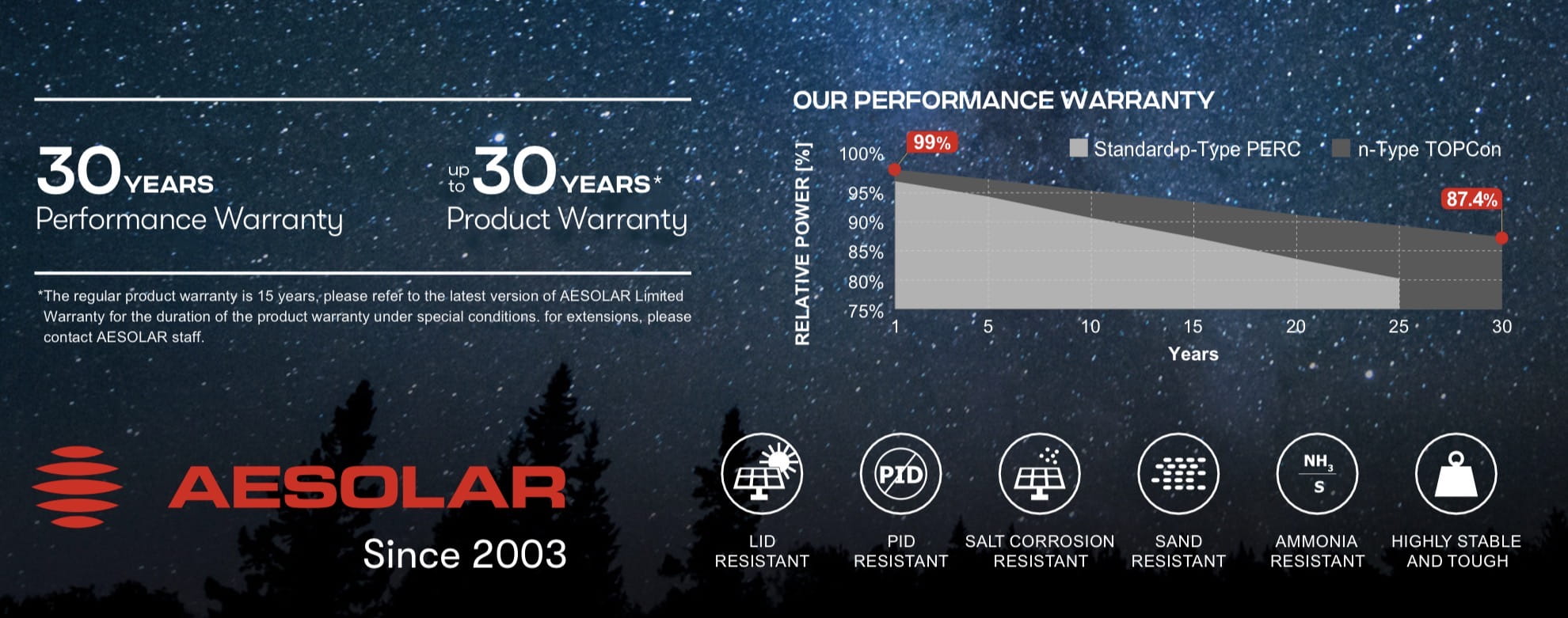 • Niska degradacja: ok. 1 procent w pierwszym roku, potem ok. 0.4 procent rocznie