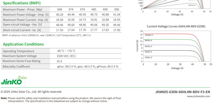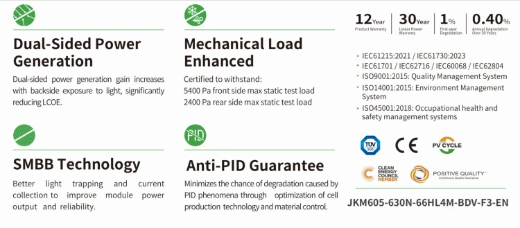 Panel fotowoltaiczny JINKO 630W BIFACIAL SILVER - 0,116€ / Wp Netto | Kontener