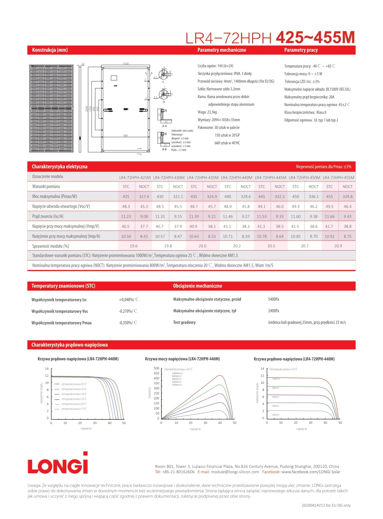 Panel fotowoltaiczny LONGI 450W SILVER MONO - 0,098€ / Wp Netto