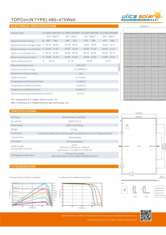 ULICA SOLAR UL-460M-108 CHVN n-type Black to wydajny i niezawodny panel 460 W, idealny do nowych instalacji i modernizacji. Ogniwa n-type TOPCon i konstrukcja half-cut zapewniają wysoką sprawność, stabilne uzyski i lepszą pracę przy częściowym zacienieniu. Solidna, czarna rama i szkło hartowane gwarantują długą żywotność oraz elegancki wygląd na dachu. Producent zapewnia długą gwarancję oraz wieloletnią gwarancję mocy, więc inwestujesz bez obaw. Panel współpracuje z falownikami z monitoringiem online, dzięki czemu łatwo kontrolujesz produkcję w aplikacji.