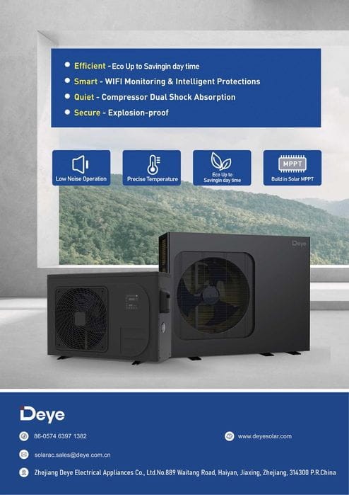 DEYE to producent rozwiązań dla energetyki i nowoczesnych instalacji, znany z rozbudowanego portfolio urządzeń do systemów OZE. Modele z serii DAWG1-ACDC łączą parametry pracy pompy ciepła z możliwością zasilania/obsługi wejścia PV DC, zgodnie z danymi katalogowymi.