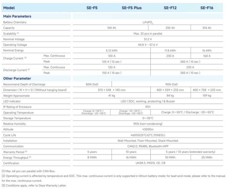 Magazyn energii DEYE SE-F16 – 16 kWh (LV 51,2 V)