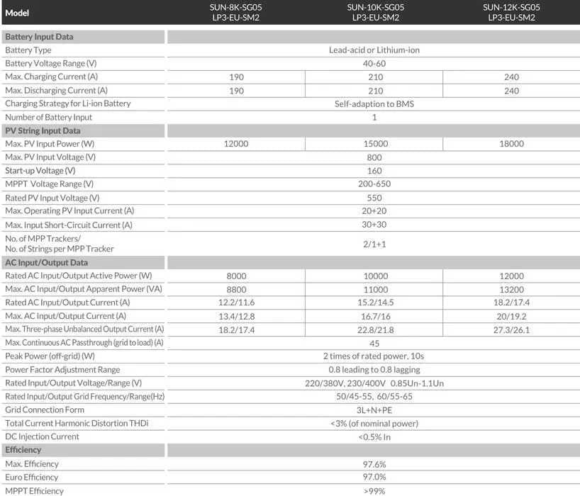 Trójfazowy falownik hybrydowy niskonapięciowy 48 V, umożliwiający pracę z magazynem energii, siecią elektroenergetyczną, generatorami oraz instalacją PV.