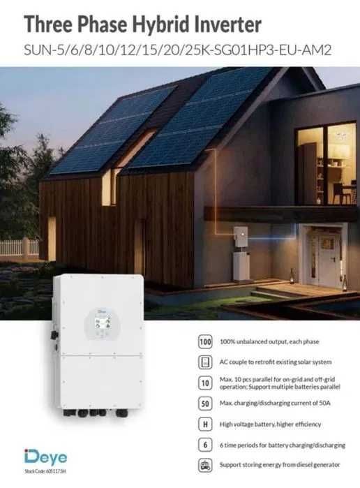 Przedmiotem sprzedaży jest kompletny zestaw fotowoltaiczny wysokonapięciowy HV, przeznaczony do nowoczesnych instalacji domowych oraz firmowych on-grid, off-grid oraz hybrydowych. Zestaw umożliwia produkcję energii z paneli fotowoltaicznych, jej magazynowanie oraz inteligentne zarządzanie zużyciem wraz z pełnym backupem awaryjnym.