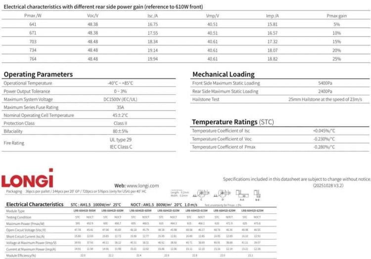 Panel Fotowoltaiczny Longi 615W Bifacial Silver Glass Glass
