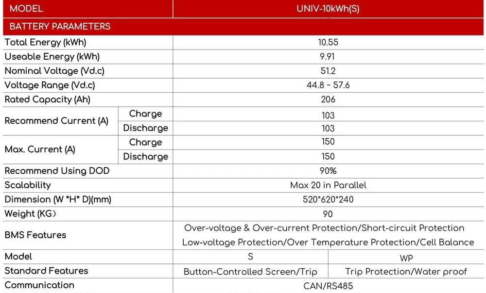 1 × Magazyn energii 10 kWh LiFePO4 UNIV – 51.2V | 206Ah | CAN RS485 | 10 lat