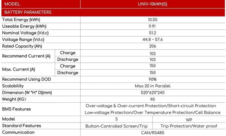 Magazyn energii 10kWh LiFePO4 UNIV – 51.2V | 206Ah