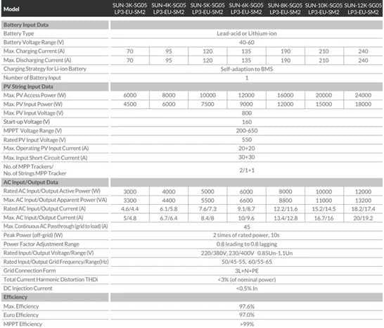 Trójfazowy falownik hybrydowy niskonapięciowy 48 V, umożliwiający pracę z magazynem energii, siecią elektroenergetyczną, generatorami oraz instalacją PV.