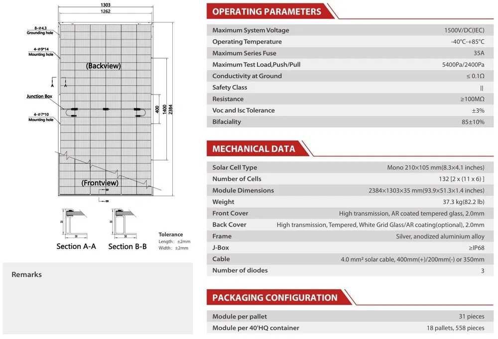 Bifacialność około 85% ±10%