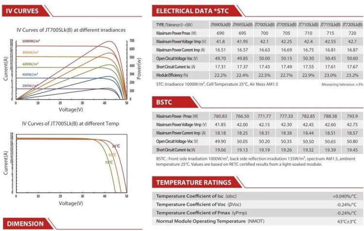 17 x Panel fotowoltaiczny Jetion 700 W HJT Bifacial Dual Glass