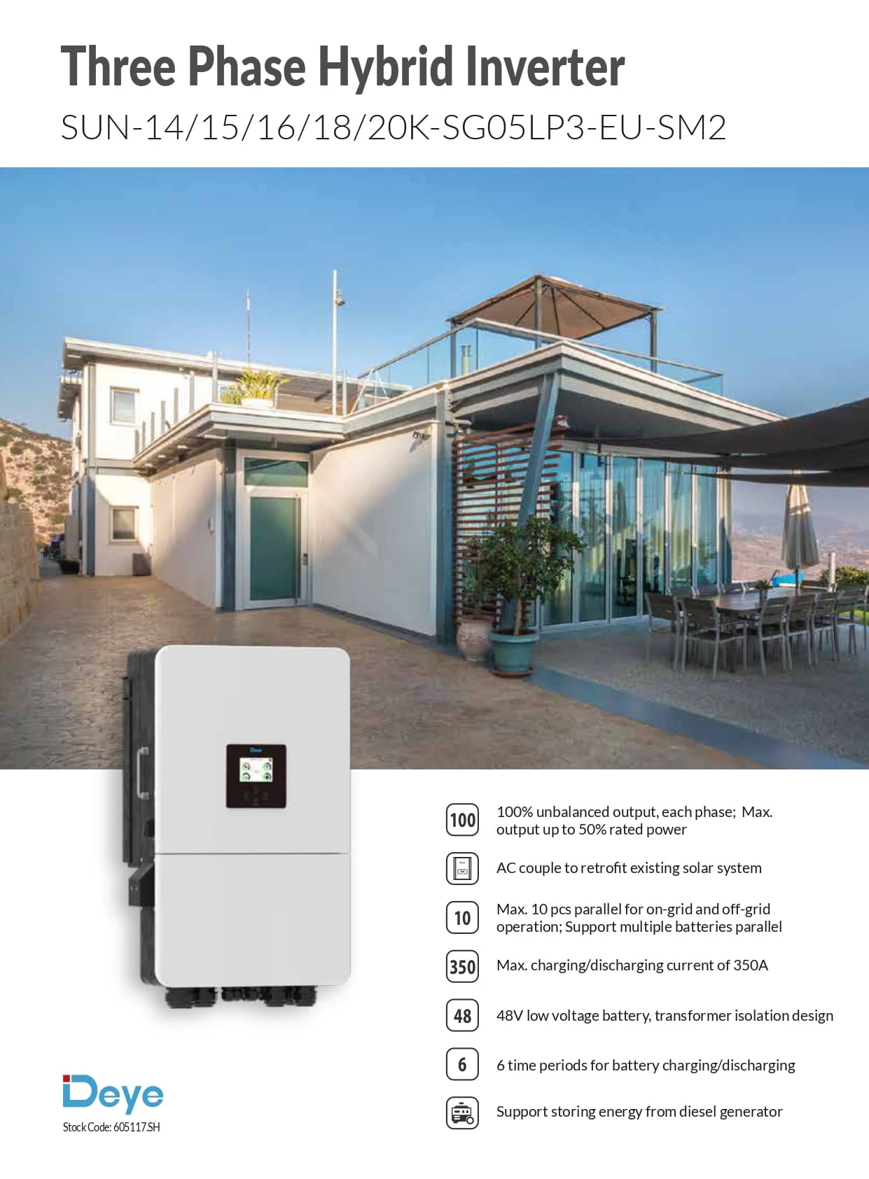 Falownik hybrydowy Deye SUN-15K-SG05LP3-EU-SM2 – 15 kW (3-fazowy)