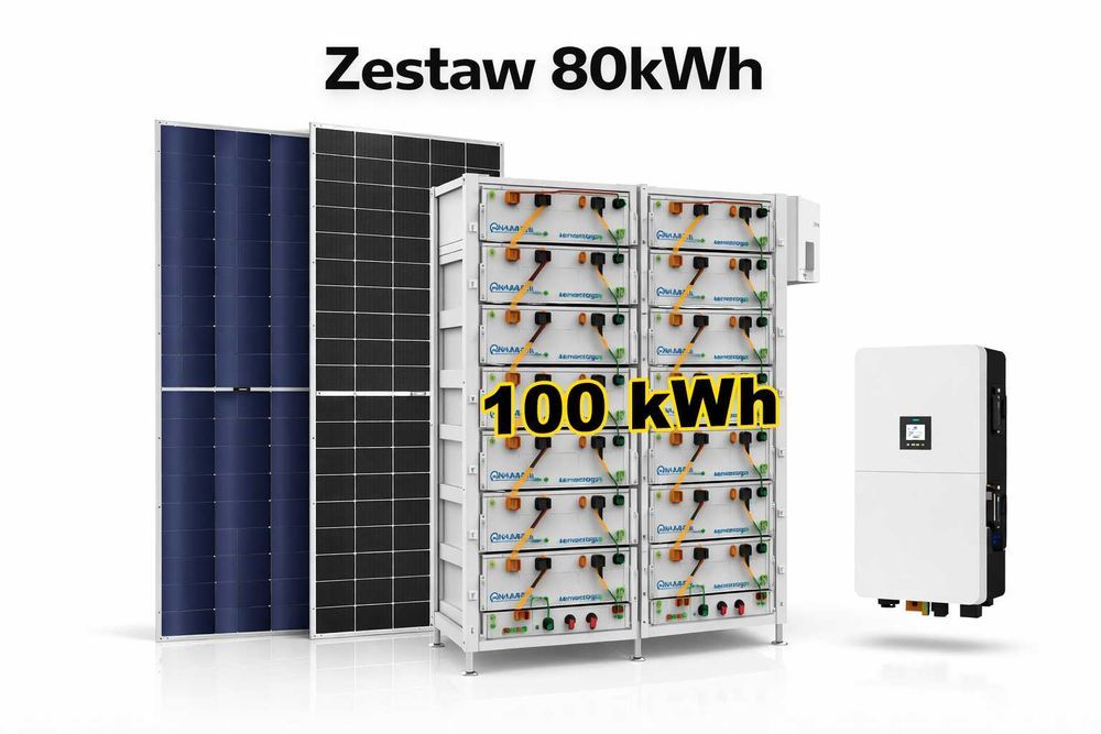 Zestaw fotowoltaiczny HV 80 kWp z inwerterem hybrydowym 80 kW 3-fazowym oraz magazynem energii 100 kWh