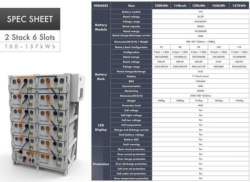 1 × Magazyn energii HINAESS C14 – 100 kWh (HV)