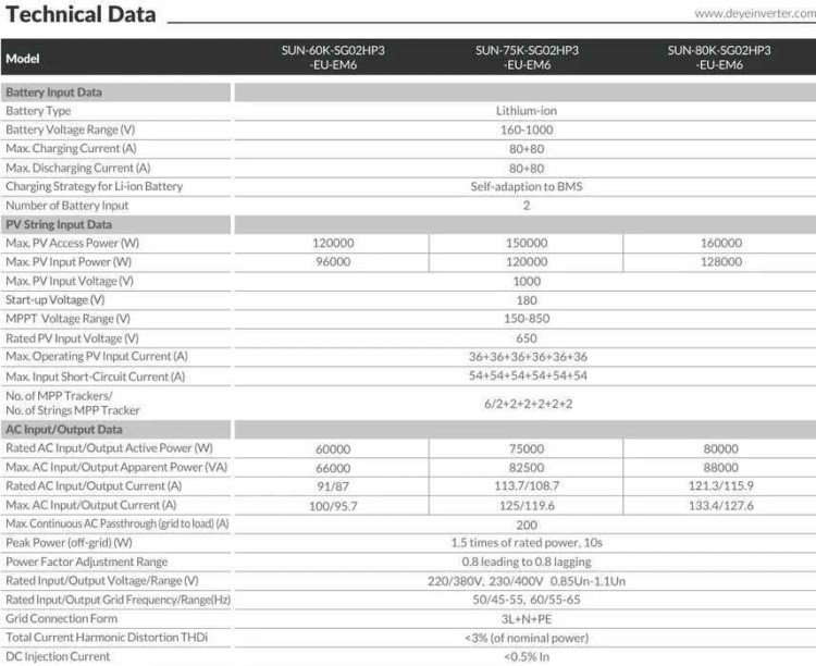 Falownik hybrydowy DEYE 80kW SG02HP3 – 3-fazowy, HV