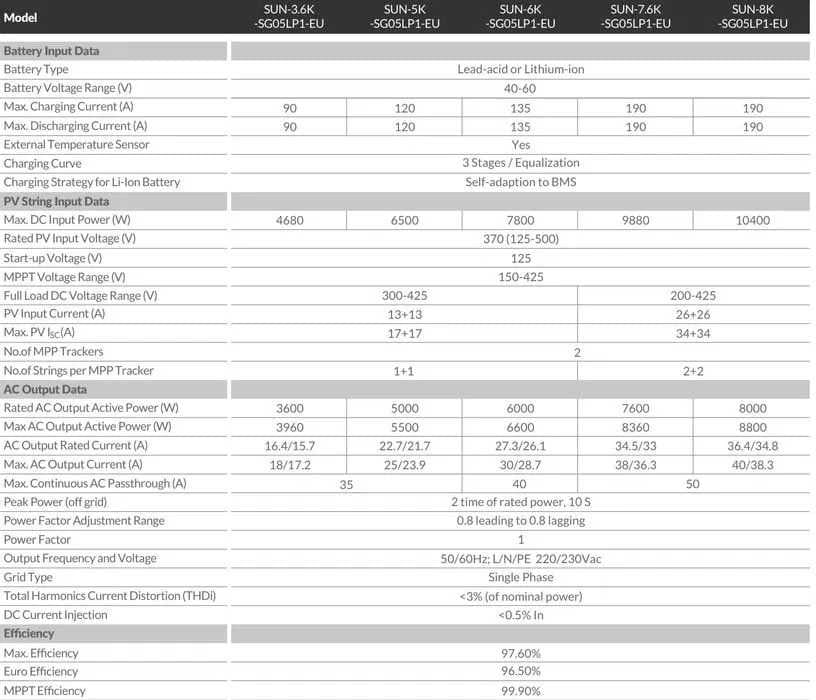 Falownik hybrydowy 1-fazowy DEYE SG05LP1 8 kW
